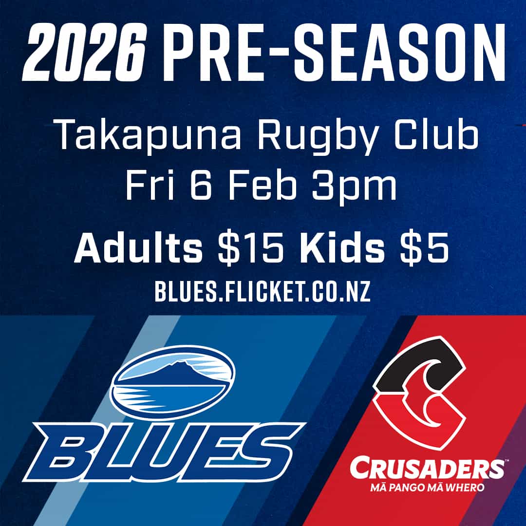 We’re thrilled to announce that Takapuna Rugby Football Club will be helping host the Pre-Season Blues v Crusaders clash right here at Onewa Domain!